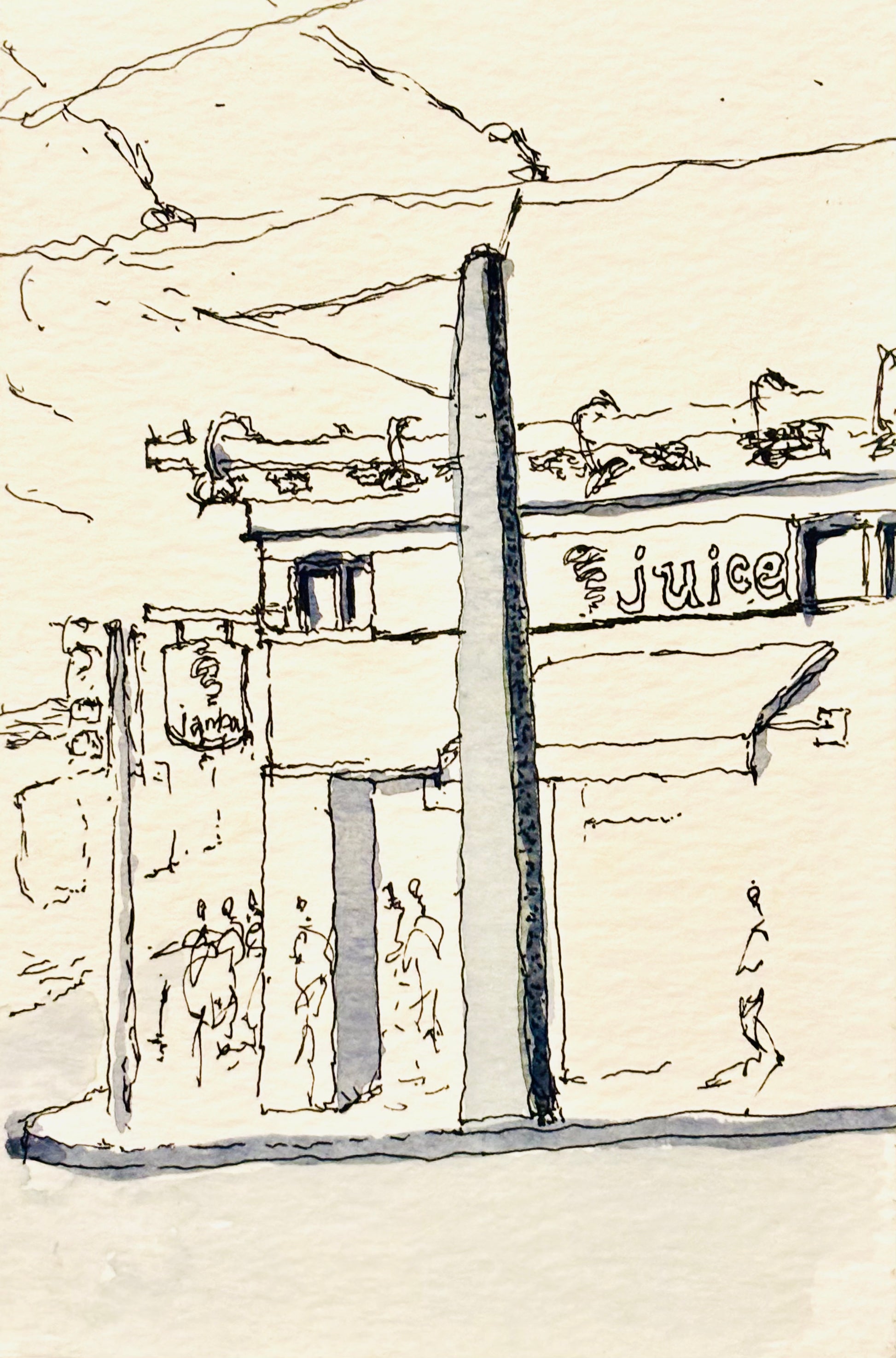 Original by Brian Canevari abstract ink sketch 3.5" x 5" in size on watercolor paper postcard.