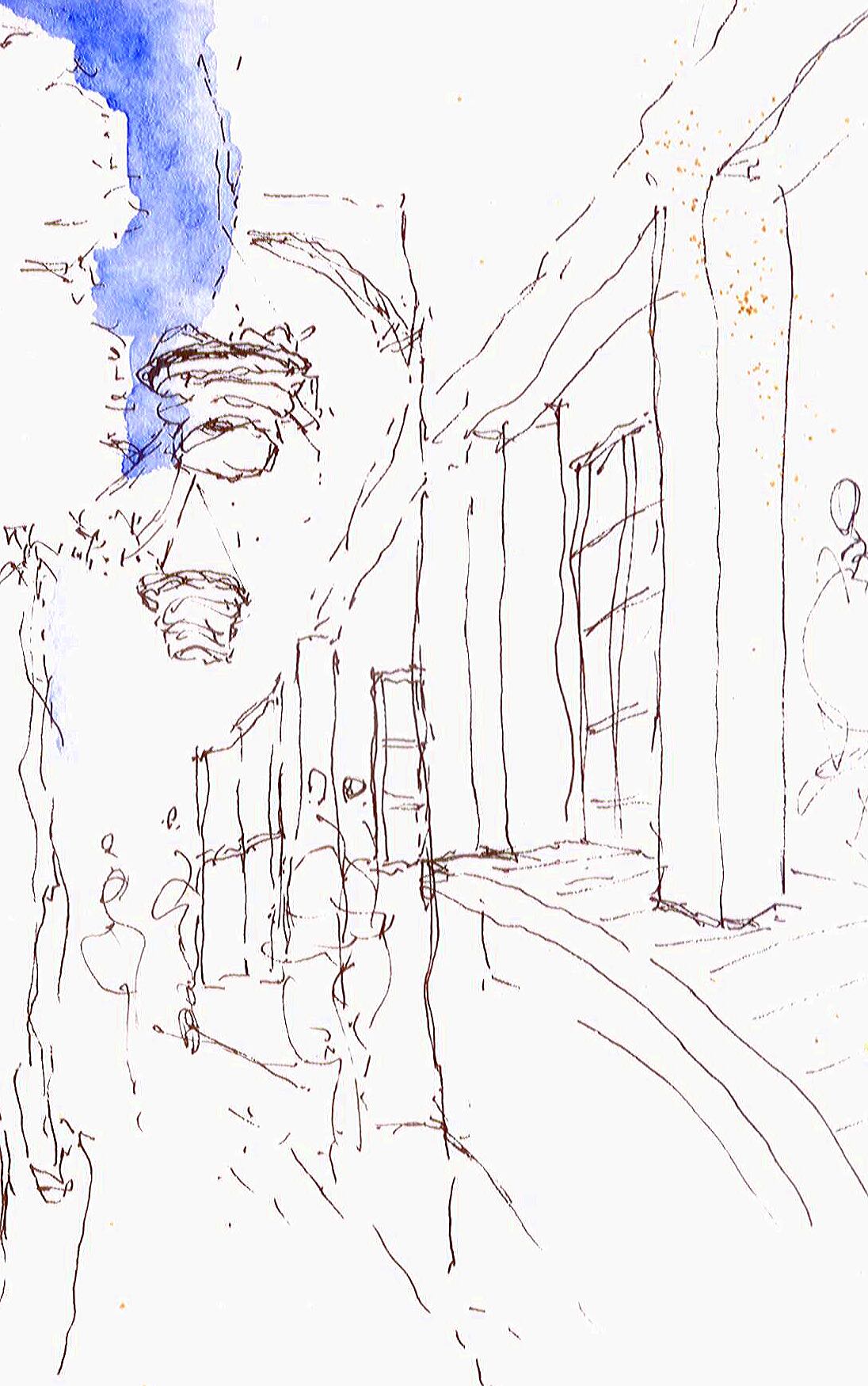 Original by Brian Canevari abstract ink sketch with watercolor, 3.5" x 5" in size on watercolor paper.