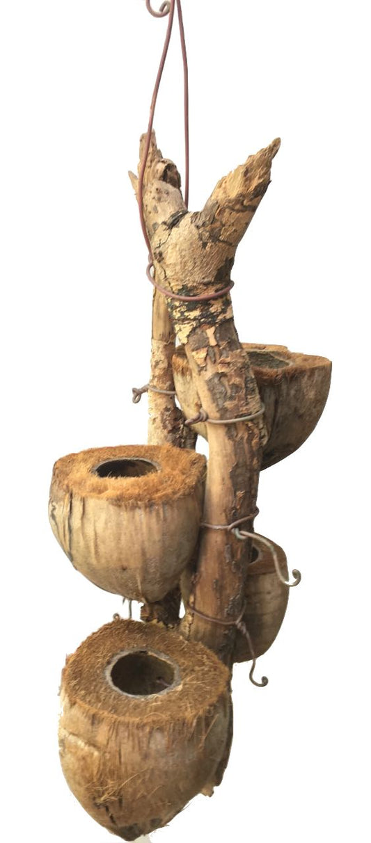 CocoDrifter - Kailua Beach Driftwood and coconut husk hanging planter sculpture