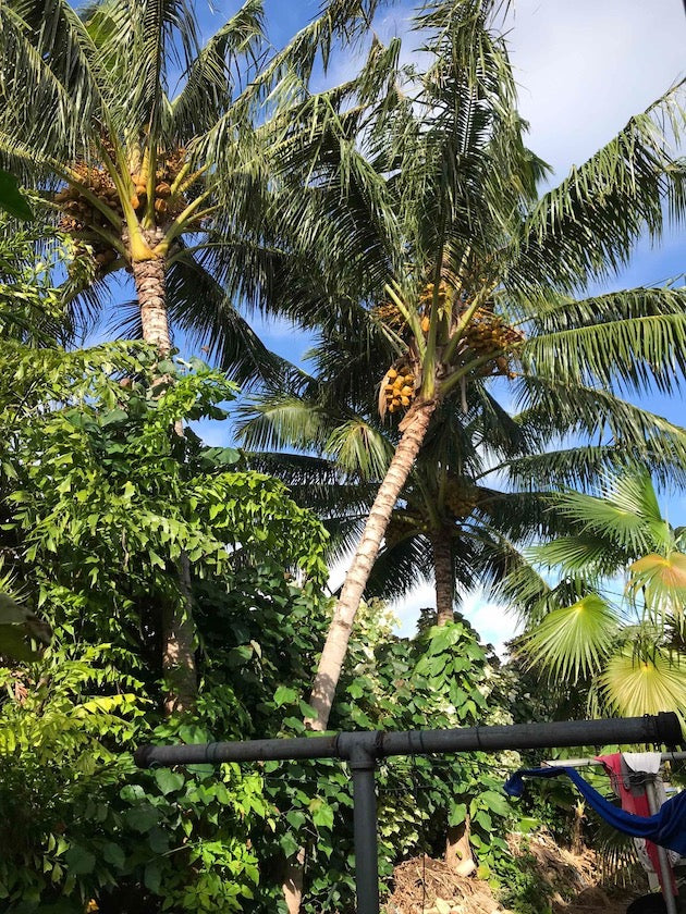 私たちは、日々の生存のための食物と材料を提供するココナッツの相 互関係を心から信じています.発芽したココナッツを見つけたら私たち はそれを植えます!