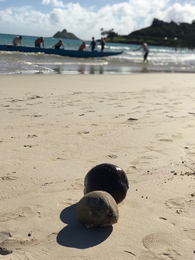 私たちは、カイルア ビーチやオアフ島のウィンドワード コー ストの多くのビーチに流れ着くココナッツを収集し続けてい ます。何年にもわたって、私たちはココナッツの供給源との関 係を築き上げてきました。