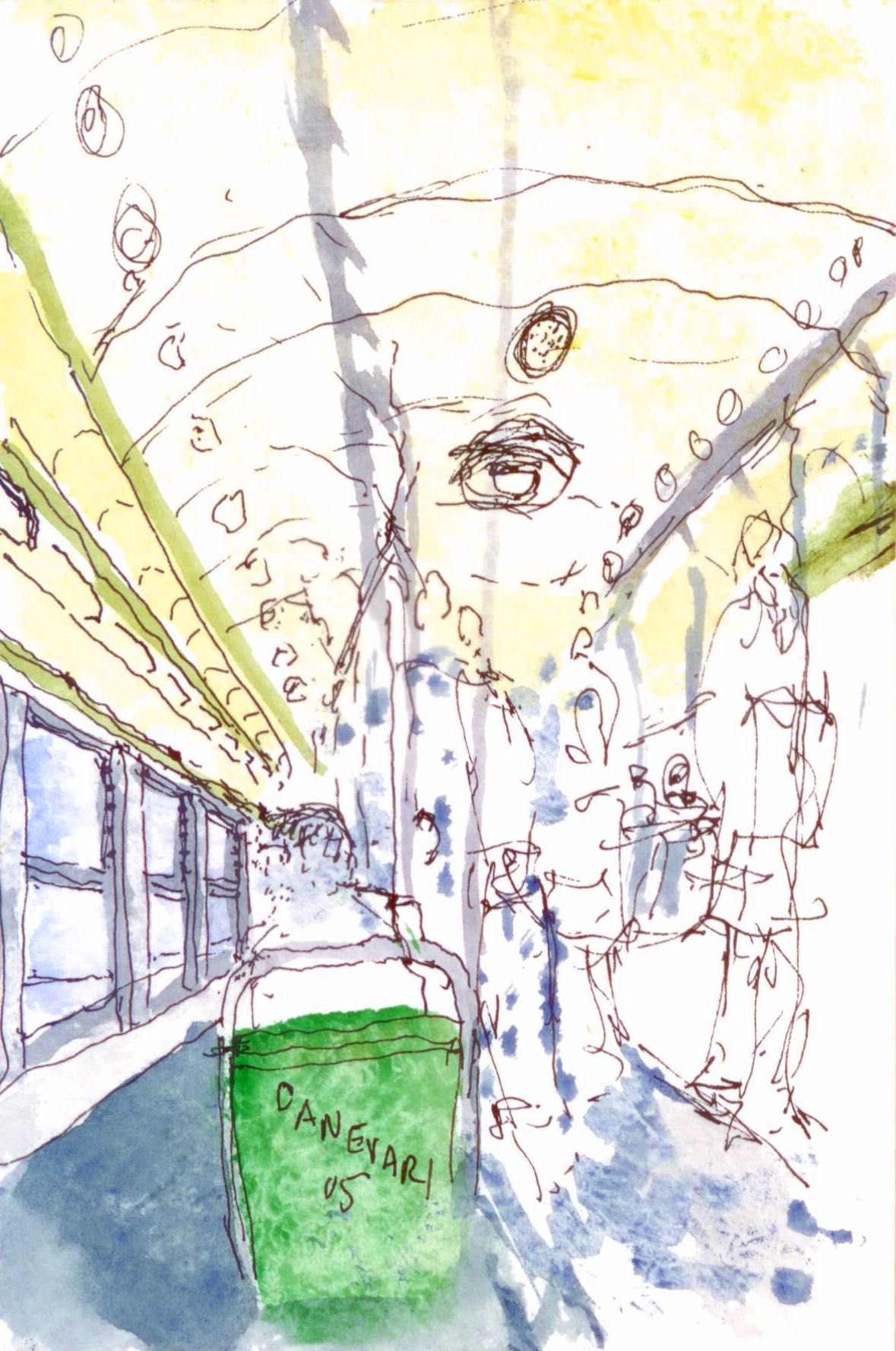 Original by Brian Canevari abstract ink sketch with watercolor, 3.5" x 5" in size on watercolor paper.