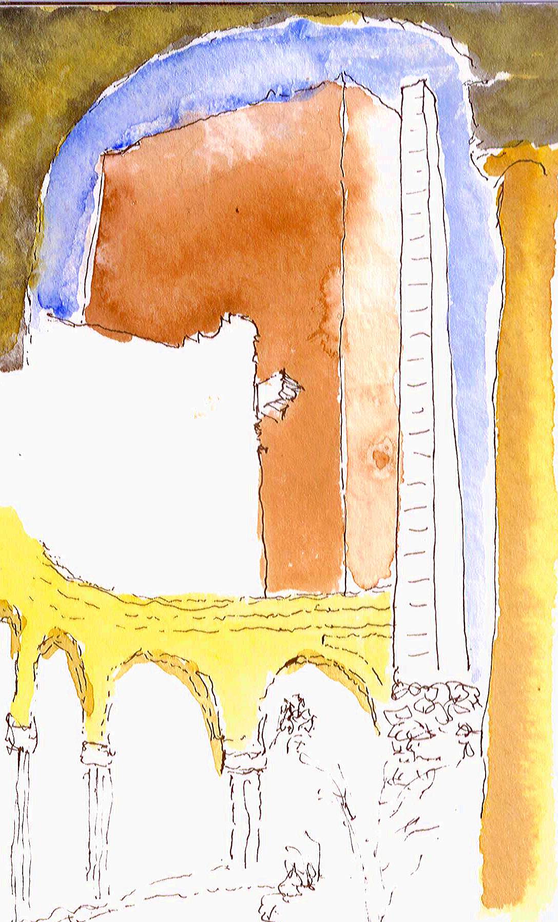 Original by Brian Canevari abstract ink sketch with watercolor, 3.5" x 5" in size on watercolor paper.
