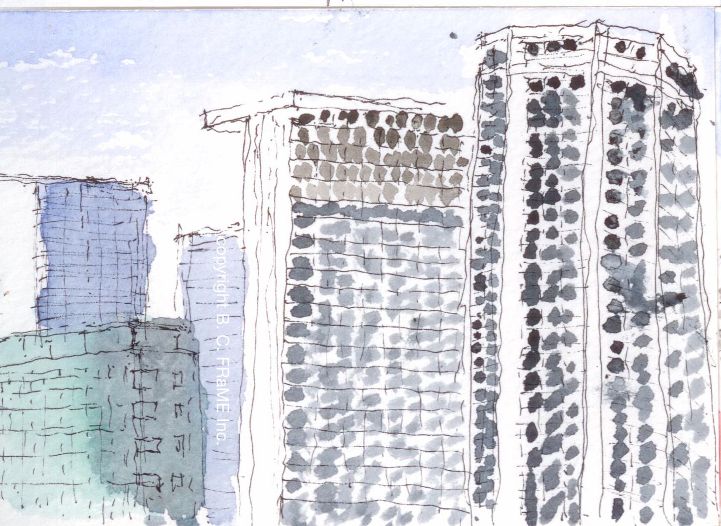 Original by Brian Canevari abstract ink sketch with watercolor, 3.5" x 5" in size on watercolor paper.