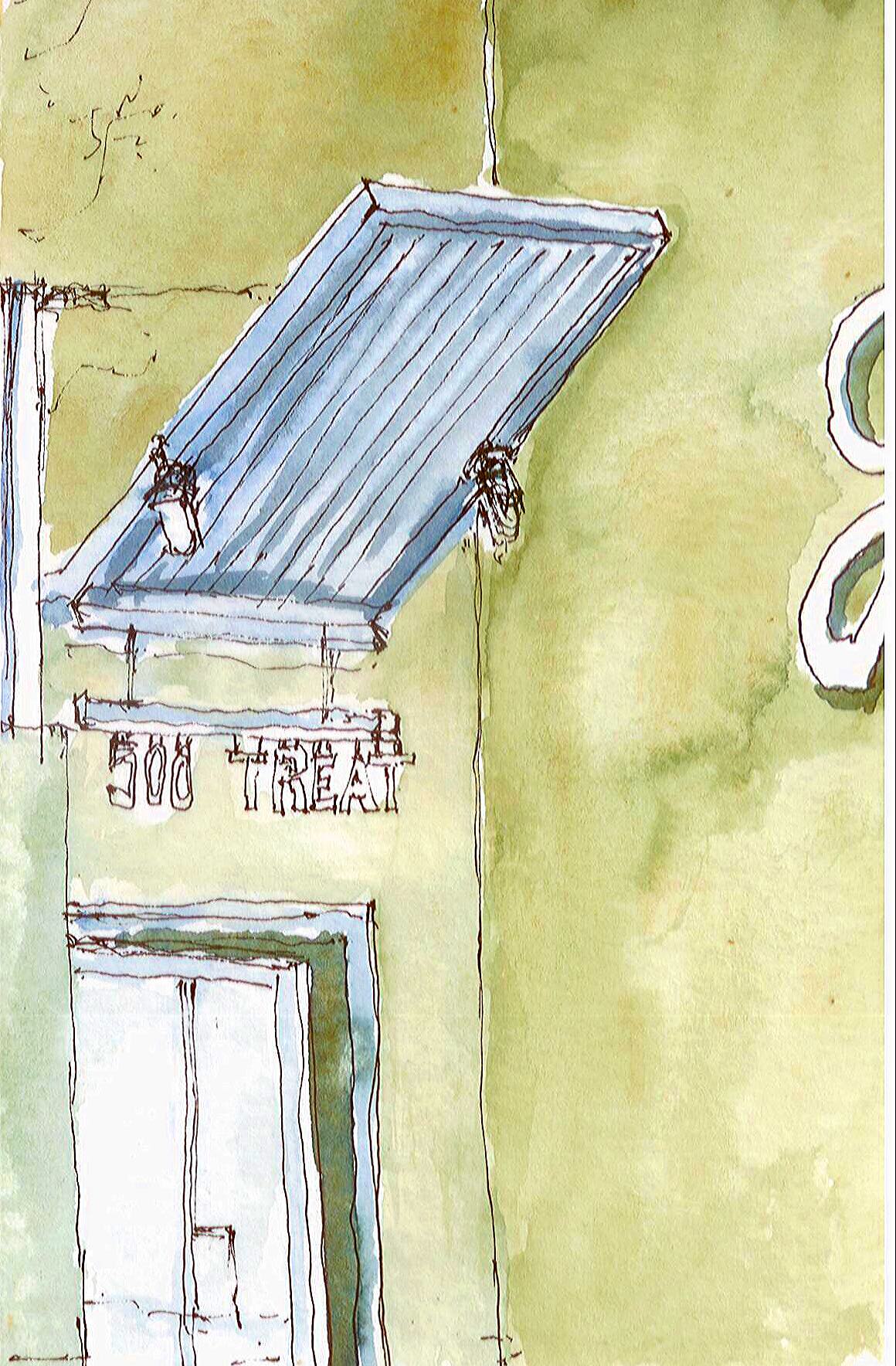 Original by Brian Canevari abstract ink sketch with watercolor, 3.5" x 5" in size on watercolor paper.